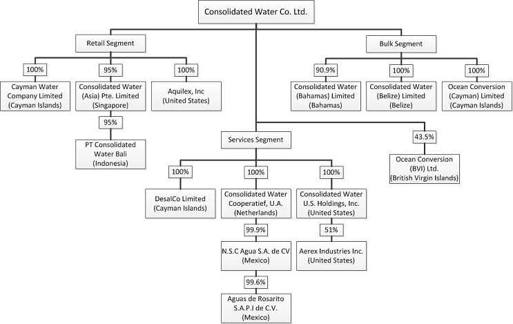 ·Bulk Water Operations. We produce and supply water to government-owned distributors in the Cayman Islands, Belize and the Bahamas. In 2016, our bulk water operations generated approximately 51% of our consolidated revenues.
