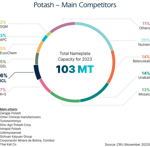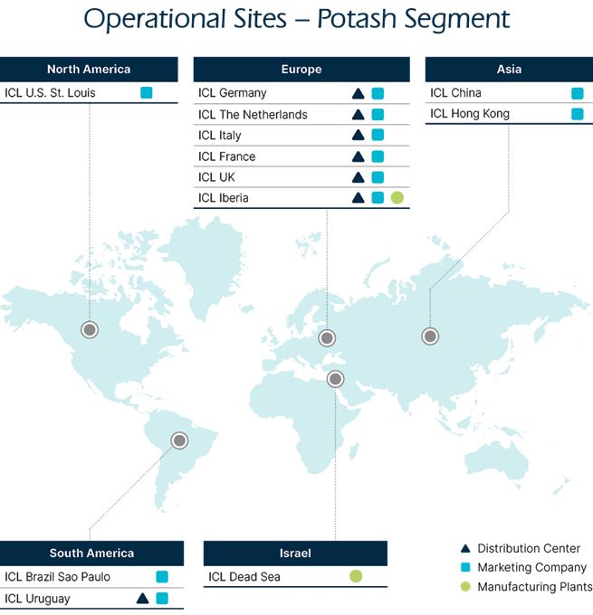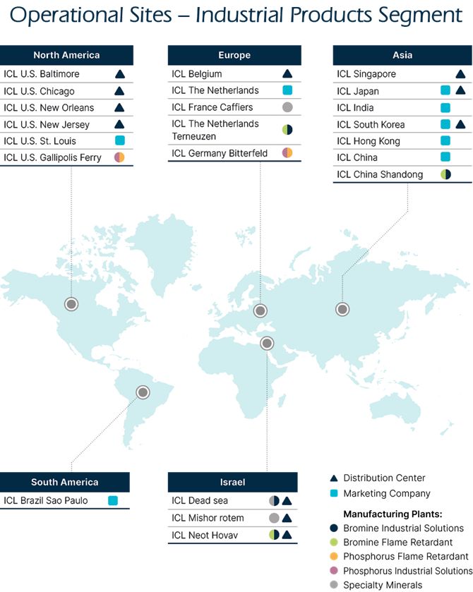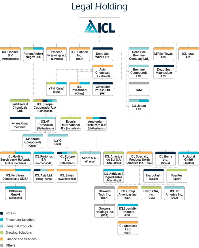 Mainly consist of property, plant and equipment, intangible assets and non-current inventories. The Company conducted an evaluation of the expected remaining useful life of Property, Plant and Equipment at its facilities in Israel. This evaluation was based on the Company's accumulated experience, ongoing maintenance practices and operational history of these facilities. The findings of this assessment, which was concluded in the third quarter, revealed that, due to the increasing adoption of new technologies and the implementation of operational excellence processes, the expected lifespan of certain Property, Plant, and Equipment exceeded their previously estimated useful life. As a result, the estimated useful life of the said assets was extended by 2‑5 years, effective from January 2023. The impact of this adjustment in 2023, is a reduction in depreciation expenses, of which $16 million was reflected in operating results, and $3 million was recorded as part of changes in inventory value. The share price as of December 31, 2022, is NIS 25.45 and $7.23. The options were issued upon Mr. Doppelt's entry into office on July 1, 2019. The record date is March 1, 2023, and the payment date is March 15, 2023. The record date is March 14, 2024, and the payment date is March 26, 2024. Israel Corporation LTD. Mainly 35 years Mainly 43 years See Note 16. Main items under 'Site restoration and equipment dismantling' In July 2022, the Company completed the ADS’s Purchase Price Allocation (PPA). The fair value of the Israeli Shekel and Euro loans issued bearing fixed interest is based on calculation of the present value of the cash flows in respect of the principal and the interest and is discounted at the market interest rates on the measurement date for similar loans having similar characteristics and is classified as Level 2 in the fair value hierarchy. The average discount interest as of December 31, 2023 for the Israeli Shekel and Euro loans was 5.5%, 5.3% respectively (December 31, 2022 for the Israeli Shekel and Euro loans 5.2%, 4.9% respectively). The fair value of the marketable debentures is based on the quoted stock exchange price and is classified as Level 1 in the fair value hierarchy. The fair value of the non‑marketable debentures is based on calculation of the present value of the cash flows in respect of the principal and the interest and is discounted at the SOFR rate customary in the market for similar loans having similar characteristics and is classified as Level 2 in the fair value hierarchy. The average discount interest as of December 31, 2023 was 8.1% (December 31, 2022 – 7%). The examination of compliance with the financial covenants is based on the Company's consolidated financial statements. As of December 31, 2023, the Company complies with all of its financial covenants. The balance includes Short-term debt, loans and debentures, derivatives on loans and debentures, and interest payables. In April 2023, the Company entered into a Sustainability-Linked Revolving Credit Facility Agreement made between ICL Finance B.V. and a consortium of twelve international banks for a $1,550 million credit facility. The Sustainability-Linked RCF replaced a previous revolving credit facility that was entered into in 2015, as amended and extended in 2018, and which was due to expire in 2025. In line with ICL’s strategic commitment to sustainability, the Sustainability-Linked RCF follows ICL’s initial Sustainability-Linked Term Loan dated September 2021. The Sustainability-Linked RCF includes three Key Performance Indicators (KPIs) which have been designed to align with ICL’s sustainability goals: a reduction in Absolute Scope 1 & 2 GHG Emissions; an increase in the percentage of female representation among senior ICL management; and an increase in the number of valid TfS (Together for Sustainability initiative) scorecards obtained for ICL Group suppliers. Each of these goals will be assessed regularly during the term of the Sustainability-Linked RCF through third-party verification of ICL’s performance in these areas. Including post-employment liabilities in the amount of $22 million and $26 million as of December 31, 2023 and 2022, respectively. See note 16. The tax rate in the UK was increased from 19% to 25% since April 1, 2023. The tax rate is an estimated average and includes federal and states tax. Different rate may apply in each specific year, as a result of different allocation of income between the different states. For 2022, included the settlement agreement related to surplus profit levy, as described above. falseFY0000941221 0000941221 2022-01-01 2022-12-31 0000941221 2021-01-01 2021-12-31 0000941221 2021-12-31 0000941221 2020-12-31 0000941221 2022-12-31 0000941221 2023-01-01 2023-12-31 0000941221 2023-12-31 0000941221icl:IndustrialProductsMember 2023-01-01 2023-12-31 0000941221icl:GrowingSolutionsMember 2023-01-01 2023-12-31 0000941221icl:PhosphateSolutionsMember 2023-01-01 2023-12-31 0000941221icl:OtherActivitiesMember 2023-01-01 2023-12-31 0000941221icl:PotashMember 2023-01-01 2023-12-31 0000941221icl:ReconciliationMember 2023-01-01 2023-12-31 0000941221icl:OtherActivitiesMember 2022-01-01 2022-12-31 0000941221icl:GrowingSolutionsMember 2022-01-01 2022-12-31 0000941221icl:PhosphateSolutionsMember 2022-01-01 2022-12-31 0000941221icl:PotashMember 2022-01-01 2022-12-31 0000941221icl:IndustrialProductsMember 2022-01-01 2022-12-31 0000941221icl:ReconciliationMember 2022-01-01 2022-12-31 0000941221icl:OtherActivitiesMember 2021-01-01 2021-12-31 0000941221icl:GrowingSolutionsMember 2021-01-01 2021-12-31 0000941221icl:PhosphateSolutionsMember 2021-01-01 2021-12-31 0000941221icl:PotashMember 2021-01-01 2021-12-31 0000941221icl:IndustrialProductsMember 2021-01-01 2021-12-31 0000941221icl:ReconciliationMember 2021-01-01 2021-12-31 0000941221country:BR 2023-01-01 2023-12-31 0000941221country:CH 2023-01-01 2023-12-31 0000941221country:GB 2023-01-01 2023-12-31 0000941221c