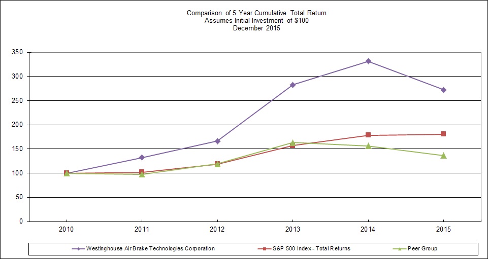 Today, Wabtec is one of the world’s largest providers of value-added, technology-based equipment and services for the global rail industry. We believe we hold approximately a 50% market share in North America for our primary braking-related equipment and a leading position in North America for most of our other product lines. Our highly engineered products, which are intended to enhance safety, improve productivity and reduce maintenance costs for customers, can be found on virtually all U.S. locomotives, freight cars, subway cars and buses, and on many of these vehicles around the world. In 2015, the Company had sales of approximately $3.3 billion and net income of about $398.6 million. In 2015, sales of aftermarket parts and services represented about 62% of total sales, while sales to customers outside of the U.S. accounted for about 47% of total sales.