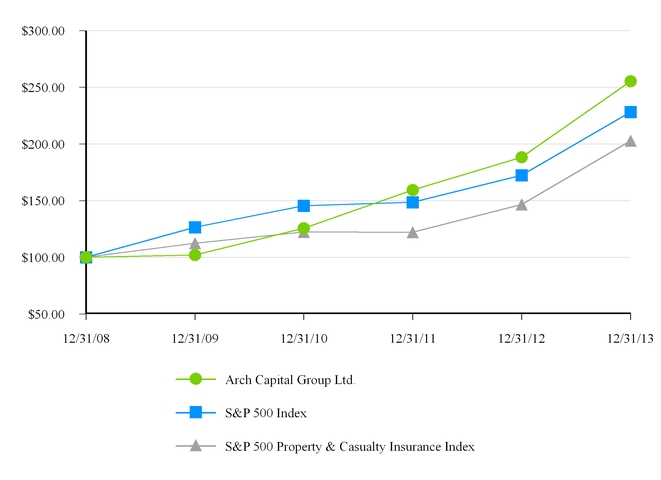 Arch Capital Group Ltd. is a Bermuda public limited liability company with $6.55 billion in capital at December 31, 2013 and, through operations in Bermuda, the United States, Europe and Canada, writes insurance and reinsurance on a worldwide basis. While we are positioned to provide a full range of property and casualty insurance and reinsurance lines, we focus on writing specialty lines of insurance and reinsurance. For 2013, we wrote $3.35 billion of net premiums and reported net income available to common shareholders of $687.8 million. Book value per common share was $39.82 at December 31, 2013, compared to $36.19 per share at December 31, 2012.