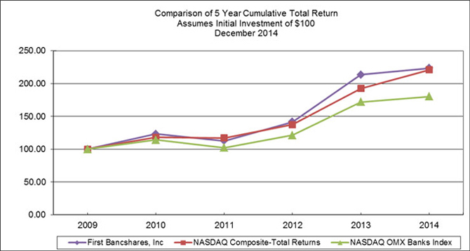 The performance graph compares the cumulative five-year shareholder return on the Company’s common stock, assuming an investment of $100 on December 31. 2008 and the reinvestment of dividends thereafter, to that of the common stocks of United States companies reported in the NASDAQ Composite-Total Returns Index and the common stocks of the NASDAQ OMX Banks Index. The NASDAQ OMX Banks Index contains securities of NASDAQ-listed companies classified according to the Industry Classification Benchmark as Banks. They include banks providing a broad range of financial services, including retail banking, loans and money transmissions.