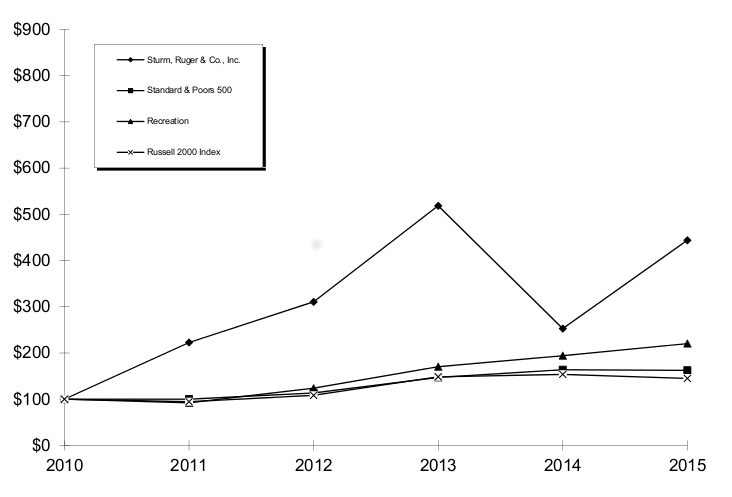 For the years ended December 31, 2015, 2014, and 2013, net sales attributable to the Company's firearms operations were approximately $544.9 million, $542.3 million and $678.6 million, or virtually all of the total net sales in each year. The balance of the Company's net sales for the aforementioned periods was attributable to its castings operations.