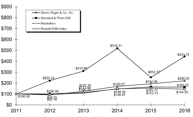 For the years ended December 31, 2016, 2015, and 2014, net sales attributable to the Company's firearms operations were $658.4 million, $544.9 million and $542.3 million. The balance of the Company's net sales for the aforementioned periods was attributable to its castings operations.